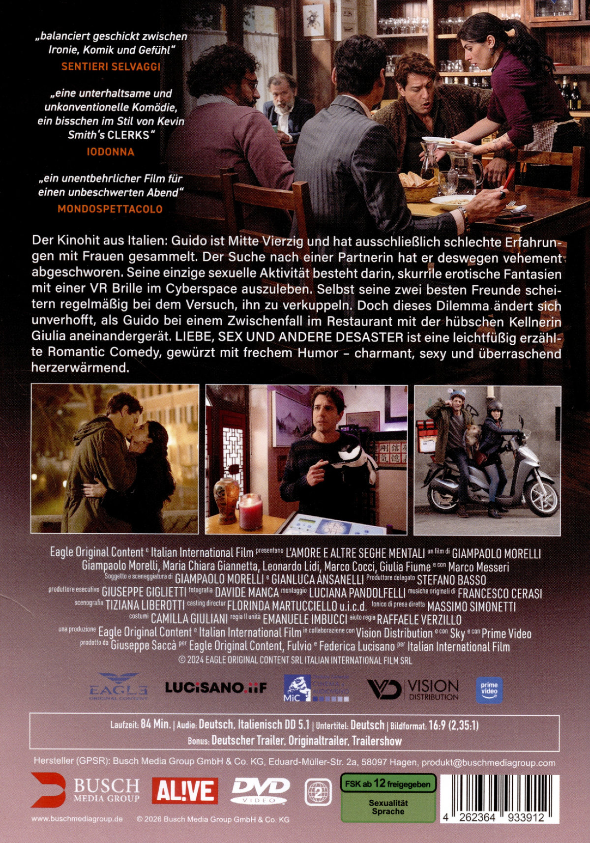 Der Kinohit aus Italien: Ein einsamer Mittvierziger mit schrägen Fantasien, zwei chaotische beste Freunde und eine hübsche Kellnerin, die das Leben des notorischen Singles unverhofft verändert. LIEBE, SEX UND ANDERE DESASTER ist eine leichtfüßig erzählte RomCom, gewürzt mit frechem American-Pie-Humor. Anzügliche Situationskomik trifft auf echte Romantik – charmant, sexy und überraschend herzerwärmend.
