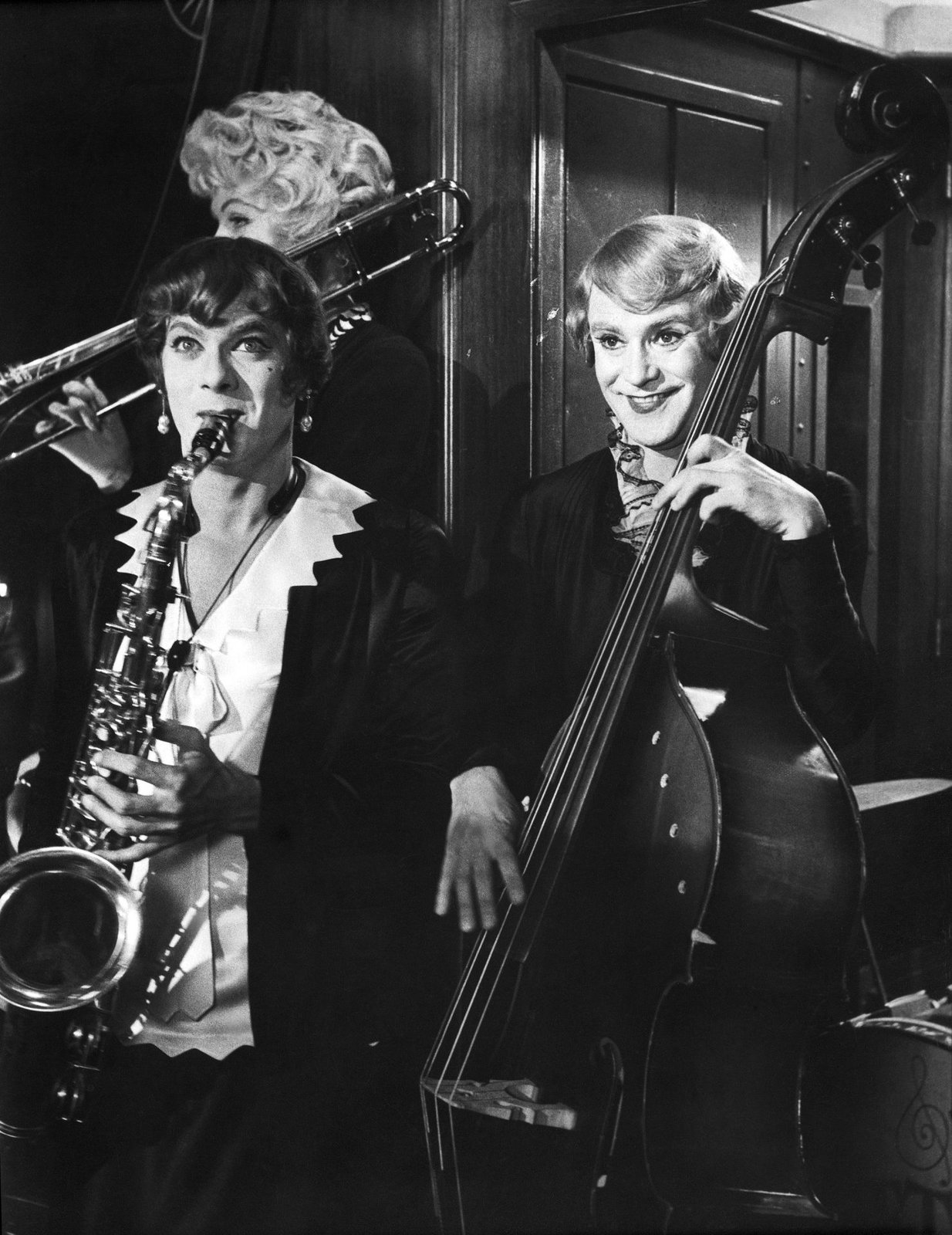 Die zwei Chicagoer Musiker Joe und Jerry werden Augenzeugen des Valentinstag-Massakers. Aus Furcht vor dem Gangster Spats Colombo ergreifen die beiden daraufhin die Flucht. Auf ihrer Reise in einen anderen Staat lernen sie die Damenkapelle um Sugar Kane Kowalczyk kennen und schließen sich kurzerhand der Band an – mit neuer Identität. Verkleidet als Frauen treten sie fortan als Josephine und Daphne auf. Doch der nächste Ärger lässt nicht lange auf sich warten ...