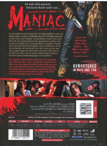 Maniac - Das Original - Uncut Mediabook Edition (DVD+blu-ray+4K Ultra HD) (Cover Fotografin)