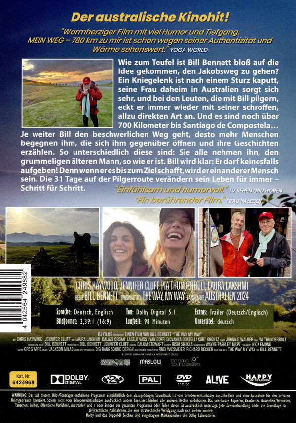 Wie zum Teufel ist Bill Bennett bloß auf diese Idee gekommen, den Jakobsweg zu gehen? ein Kniegelenk ist nach einem Sturz kaputt, seine Frau daheim in Australien sorgt sich sehr, und bei den Leuten, die mit Bill pilgern, eckt er immer wieder mit seiner schroffen, allzu direkten Art an. Und es sind noch über 700 Kilometer bis Santiago de Compostela… Je weiter Bill den beschwerlichen Weg geht, desto mehr Menschen begegnen ihm, die sich ihm gegenüber öffnen und ihre Geschichten erzählen. So unterschiedlich diese sind: Sie alle nehmen ihn, den grummeligen älteren Mann, so wie er ist. Bill wird klar: Er darf keinesfalls aufgeben! Denn wenn er es bis zum Ziel schafft, wird er ein anderer Mensch sein. Die 31 Tage auf der Pilgerroute verändern sein Leben für immer – Schritt für Schritt.
