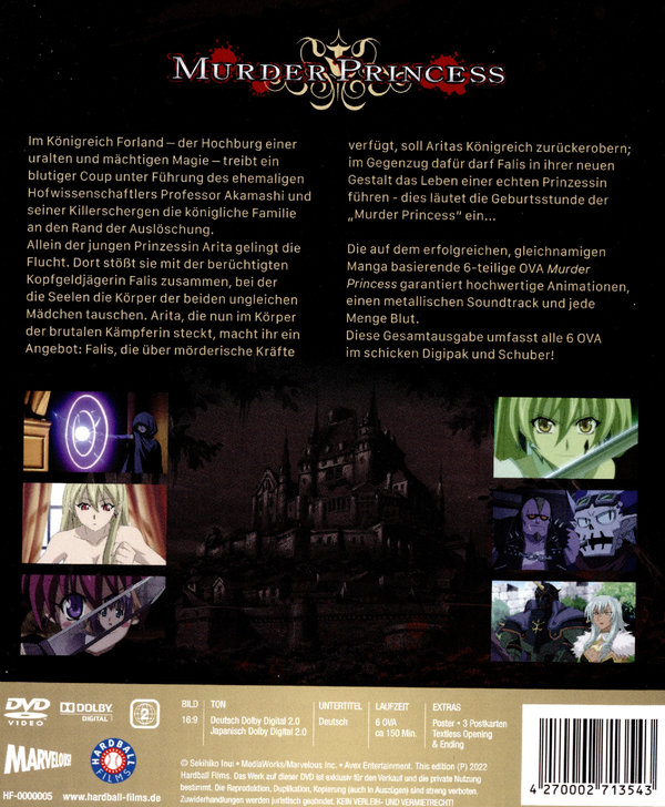 Die auf dem erfolgreichen, gleichnamigen Manga basierende 6-teilige OVA Murder Princess garantiert hochwertige Animationen, einen metallischen Soundtrack und jede Menge Blut. Wir freuen uns, die actiongeladene OVA-Reihe zum ersten Mal in Deutschland auf Blu-ray präsentieren zu können. Diese Gesamtausgabe umfasst alle 6 OVA im schicken Digipak und Schuber!