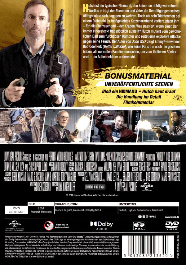 Hutch ist ein typischer Niemand, den keiner so richtig wahrnimmt. Wortlos erträgt der Ehemann und Vater die Demütigungen seines Alltags, ohne sich dagegen zu wehren. Doch als sein Töchterchen bei einem Diebstahl ihr heißgeliebtes Katzenarmband verliert, platzt ihm - für alle überraschend - der Kragen. Was passiert, wenn einer, der immer eingesteckt hat, plötzlich austeilt? Hutch mutiert vom gewöhnlichen Dad zum furchtlosen Kämpfer und reitet eine explosive Attacke gegen seine Feinde.