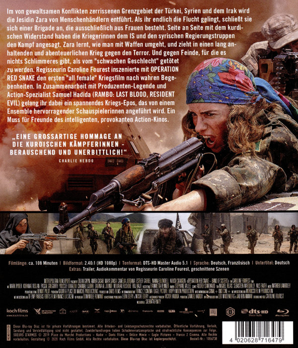 Regisseurin Caroline Fourest inszenierte mit OPERATION RED SNAKE den ersten „all female“ Kriegsfilm nach wahren Begebenheiten. In Zusammenarbeit mit Produzenten-Legende und Action-Spezialist Samuel Hadida (RAMBO: LAST BLOOD, RESIDENT EVIL) gelang ihr dabei ein spannendes Kriegs-Epos, das von einem Ensemble hervorragender Schauspielerinnen angeführt wird. Ein Muss für Freunde des intelligenten, provokanten Action-Kinos.