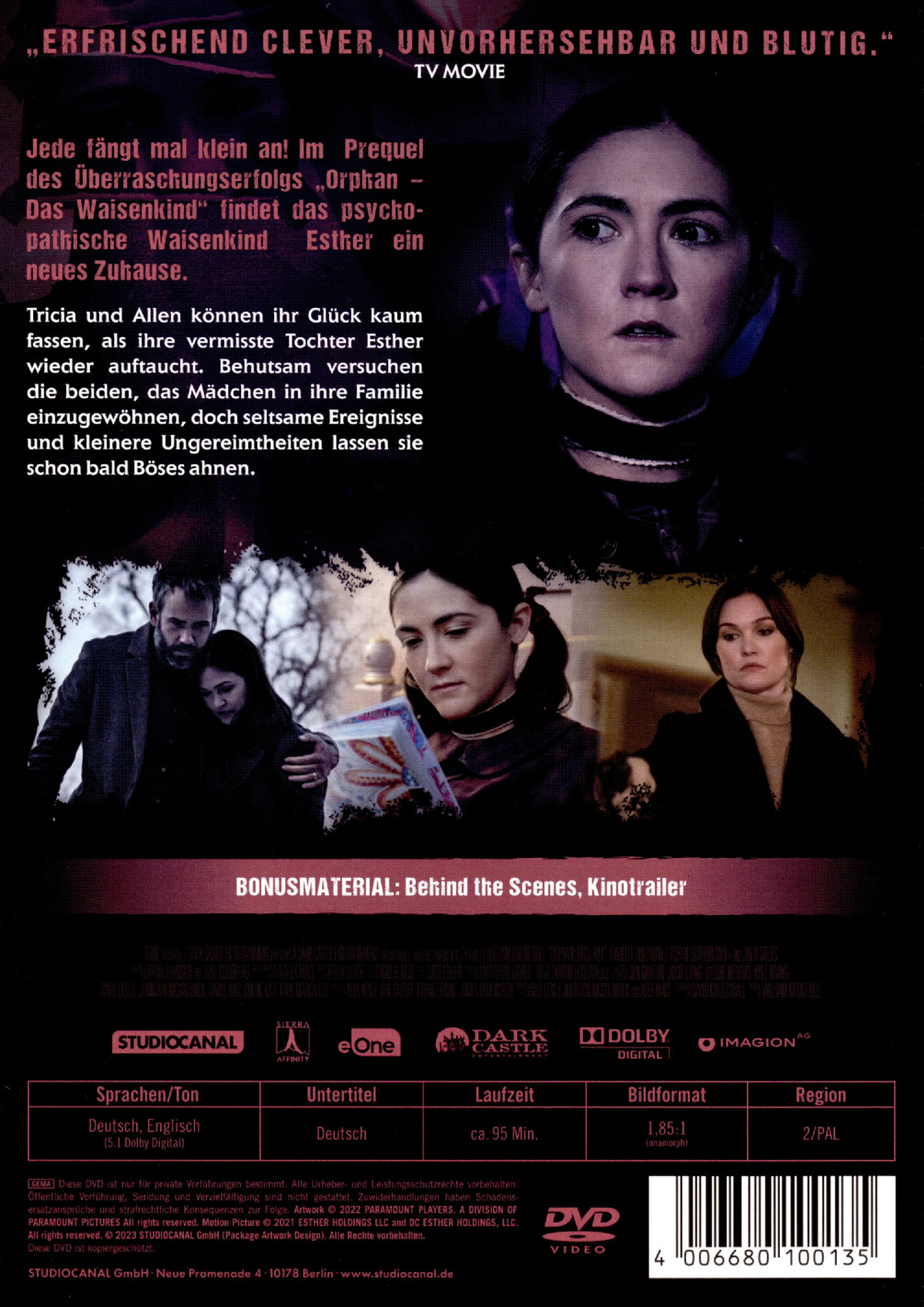 Genre-Spezialist Willam Brent Bell, der schon mit "The Boy" sein Faible für Evil-Child-Horrorfilme eindrucksvoll unter Beweis stellte, inszeniert mit ORPHAN: FIRST KILL nun erneut einen nervenaufreibenden Horrorschocker in dem Sub-Genre: Im Prequel zum Fanhit "Orphan - Das Waisenkind" (2009) bringt der Filmemacher die psychopathische Esther zurück auf die Kinoleinwand und mit ihr auch Schauspielerin Isabelle Fuhrman, die erneut in die Rolle des mörderischen Mädchens schlüpft. An ihrer Seite sind Julia Stiles ("The Hustler") und Rossif Sutherland ("The Possessor") als das Ehepaar zu sehen, dessen Leben dramatisch bedroht ist - fulminantes Finale garantiert!