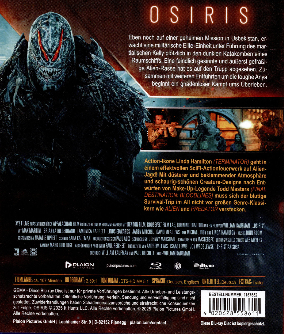 Action-Ikone Linda Hamilton (TERMINATOR) geht in einem effektvollen SciFi-Actionfeuerwerk auf Alien-Jagd! Mit düsterer und beklemmender Atmosphäre und schaurig-schönen Creature-Designs nach Entwürfen von Make-Up-Legende Todd Masters (FINAL DESTINATION: BLOODLINES) muss sich der blutige Survival-Trip im All nicht vor großen Genre-Klassikern wie ALIEN und PREDATOR verstecken.