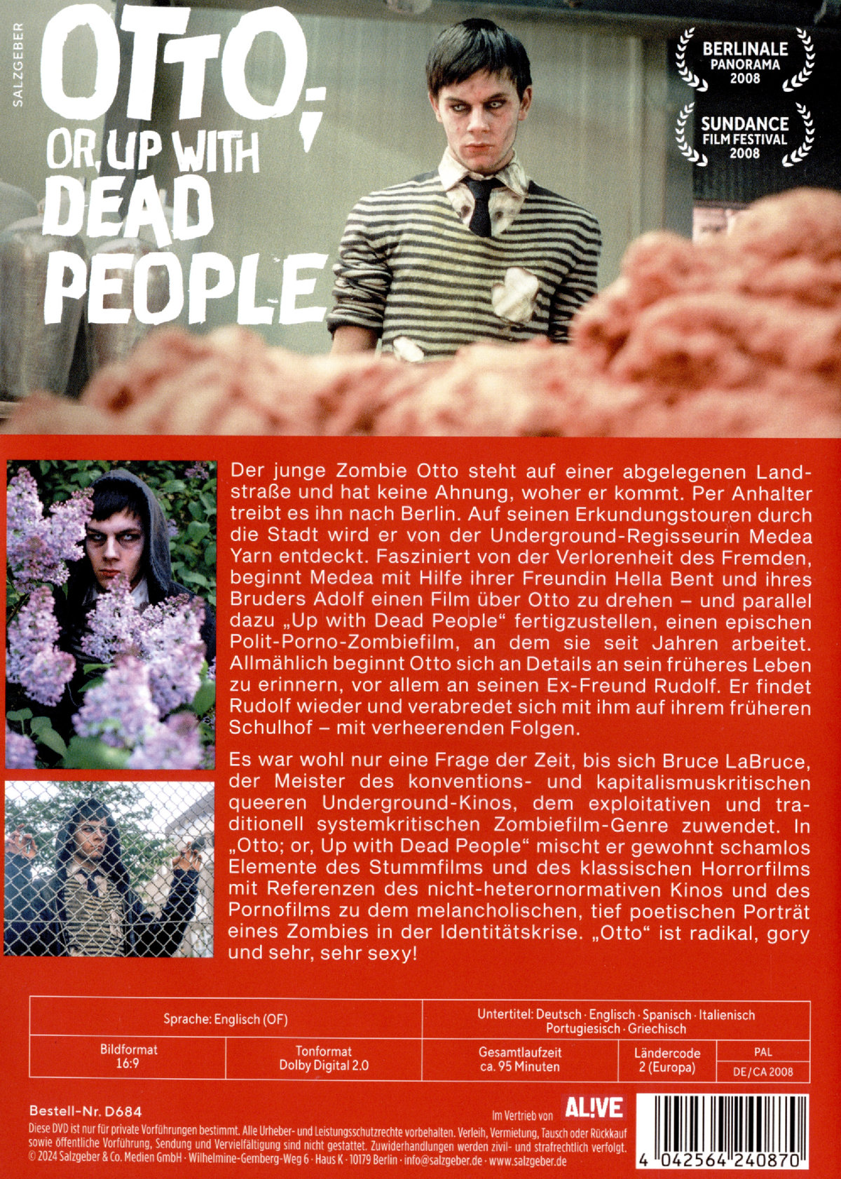 Der junge Zombie Otto steht auf einer abgelegenen Landstraße und hat keine Ahnung, woher er kommt. Per Anhalter treibt es ihn nach Berlin. Auf seinen Erkundungstouren durch die Stadt wird er von der Underground-Regisseurin Medea Yarn entdeckt. Fasziniert von der Verlorenheit des Fremden, beginnt Medea mit Hilfe ihrer Freundin Hella Bent und ihres Bruders Adolf einen Film über Otto zu drehen – und parallel dazu „Up with Dead People“ fertigzustellen, einen epischen Polit-Porno-Zombie-Film, an dem sie seit Jahren arbeitet. Allmählich beginnt Otto sich an Details seines früheren Lebens zu erinnern, vor allem an seinen Ex-Freund Rudolf. Er findet Rudolf wieder und verabredet sich mit ihm auf ihrem früheren Schulhof – mit verheerenden Folgen.