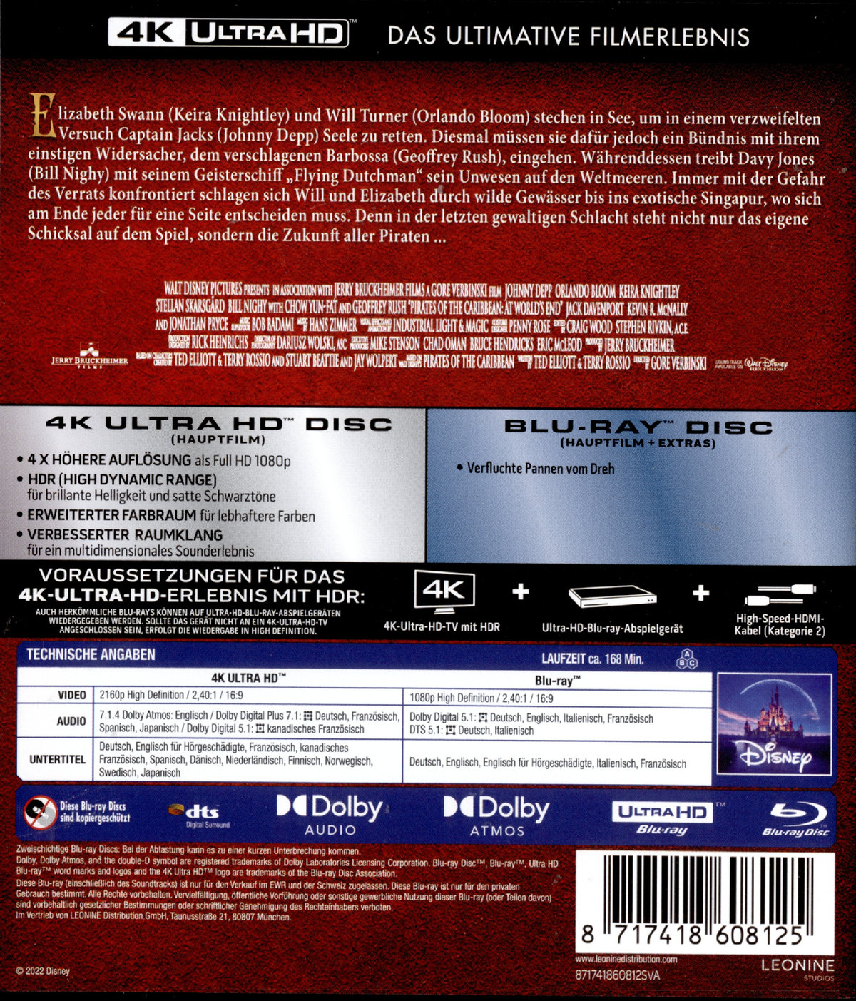 Produktinformationen "Pirates of the Caribbean 3 - Am Ende der Welt (4K Ultra HD) (+ Blu-ray 2D) (Blu-ray 4K Ultra HD)"