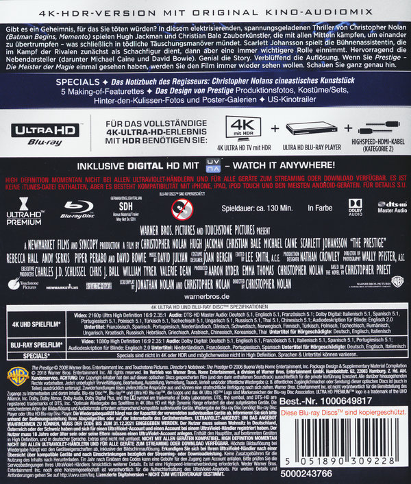 Produktinformationen "Prestige - Die Meister der Magie (4K Ultra)"