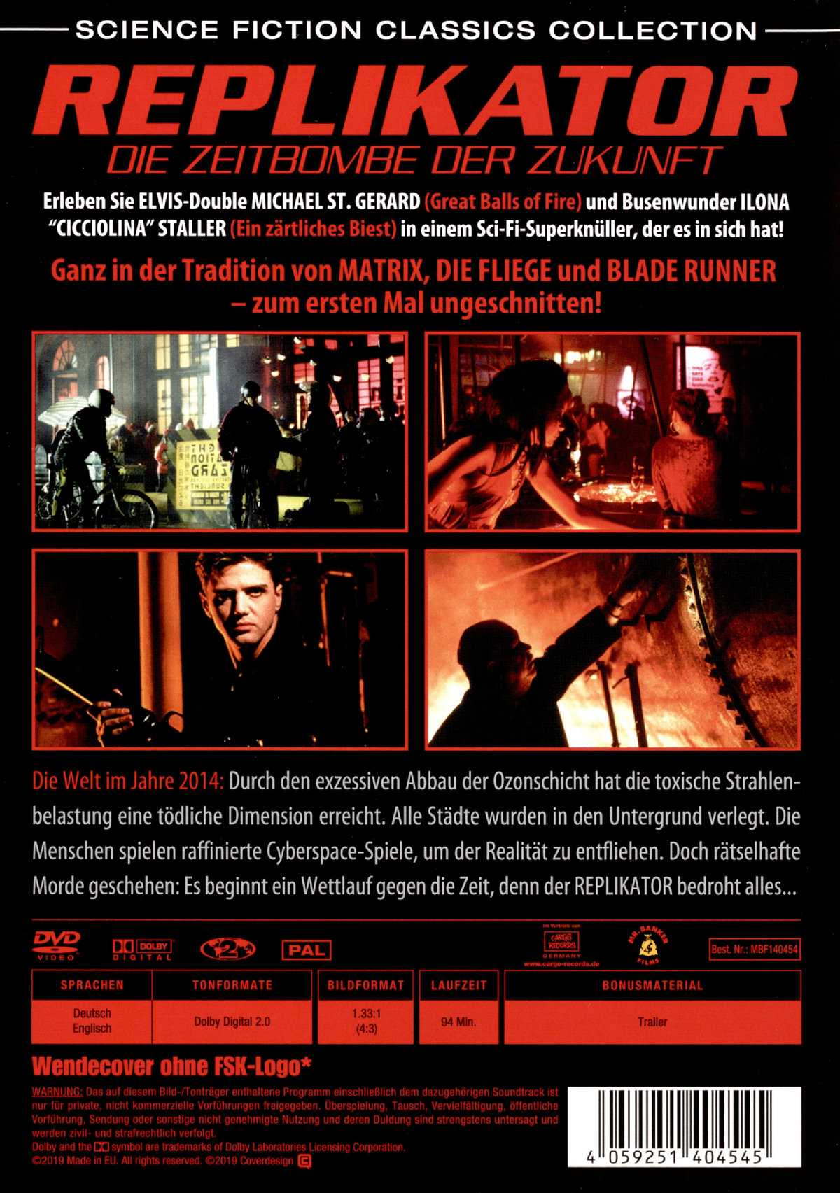 Die Welt im Jahre 2014: Durch den exzessiven Abbau der Ozonschicht hat die toxische Strahlenbelastung eine tödliche Dimension erreicht. Alle Städte wurden in den Untergrund verlegt. Die Menschen spielen raffinierte Cyberspace-Spiele, um der Realität zu entfliehen. Doch rätselhafte Morde geschehen: Es beginnt ein Wettlauf gegen die Zeit, denn der REPLIKATOR in der Gestalt ELVIS PRESLEYS bedroht alles ... Er sieht aus wie Elvis, doch er ist die Mordmaschine aus der Zukunft!