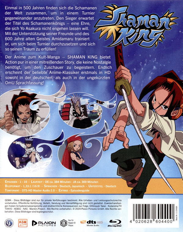Der Anime zum Kult-Manga – SHAMAN KING bietet Action pur in einer mitreißenden Story, die keine Nostalgie benötigt, um den Zuschauer zu begeistern. Endlich erscheint der beliebte Anime-Klassiker erstmals in HD sowohl in der deutschen, als auch in der ungekürzten OmU Sprachfassung!