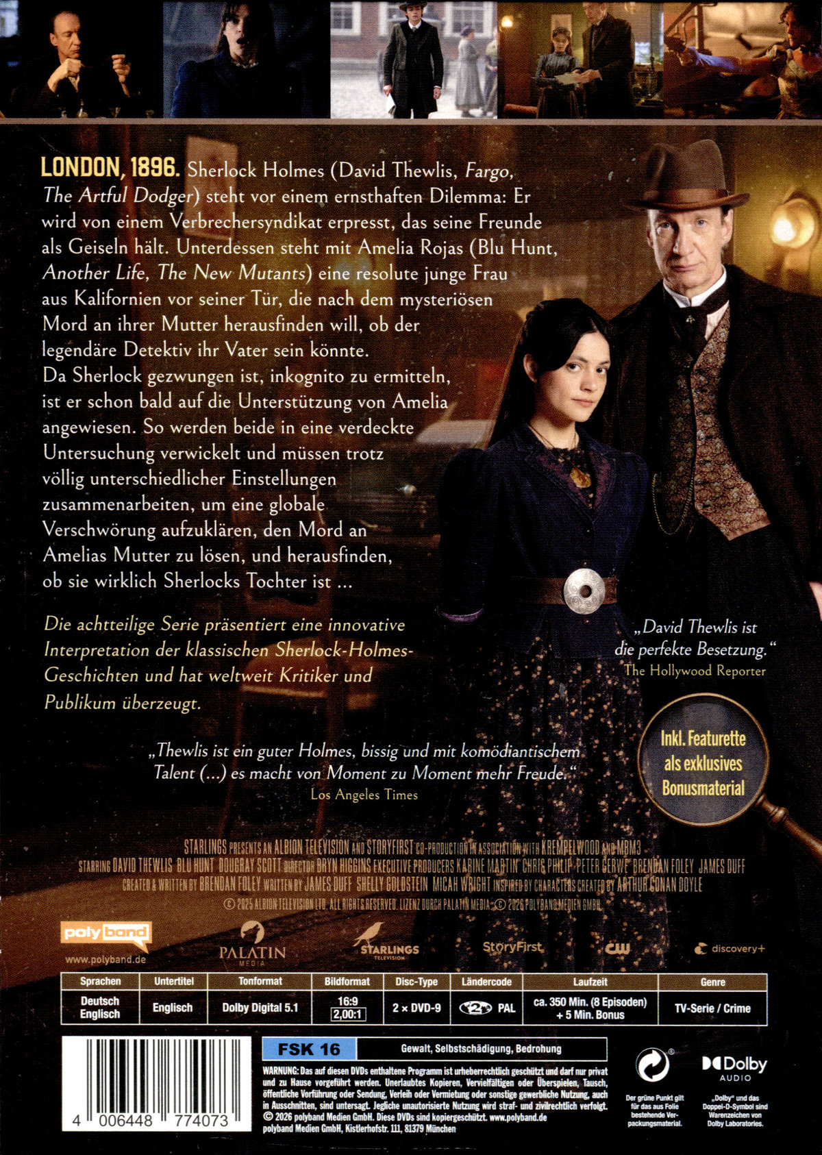 London 1896. Sherlock Holmes (David Thewlis, Fargo, Harry Potter) steht vor einem ernsthaften Dilemma: Er wird von einem Verbrechersyndikat erpresst, das seine Freunde als Geiseln hält. Unterdessen steht mit Amelia Rojas (Blu Hunt, Another Life, The New Mutants), eine resolute junge Frau aus Kalifornien vor seiner Tür, die nach dem mysteriösen Mord an ihrer Mutter herausfinden will, ob der legendäre Detektiv ihr Vater sein könnte. Da Sherlock gezwungen ist, inkognito zu ermitteln, ist er schon bald auf die Unterstützung von Amelia angewiesen. So werden beide in eine verdeckte Untersuchung verwickelt und müssen trotz völlig unterschiedlicher Einstellungen zusammenarbeiten, um eine globale Verschwörung aufzuklären, den Mord an Amelias Mutter zu lösen und herausfinden, ob sie wirklich Sherlocks Tochter ist …