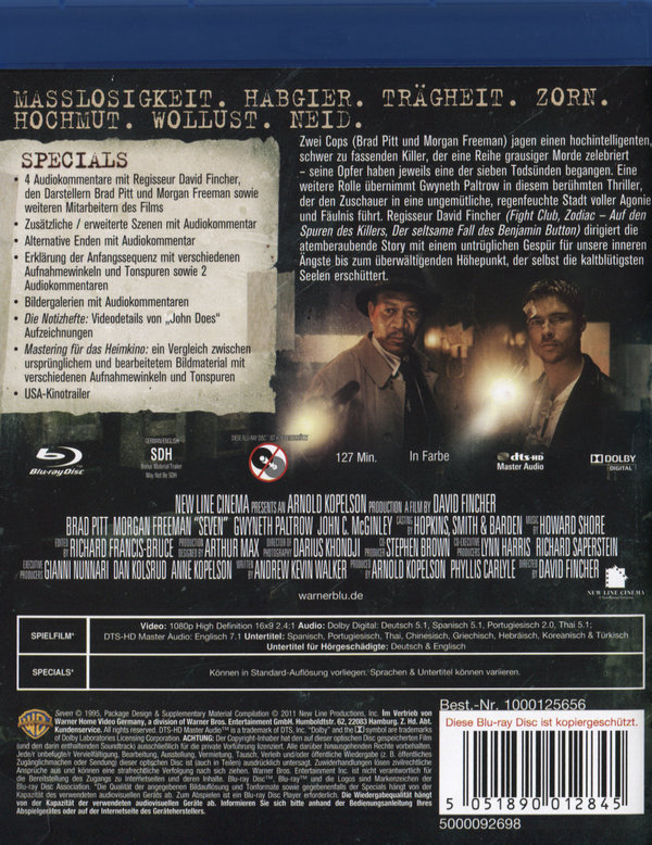 4 Audiokommentare mit Regisseur David Fincher, den Darstellern Brad Pitt und Morgan Freeman sowie weiteren Mitarbeitern des Films;