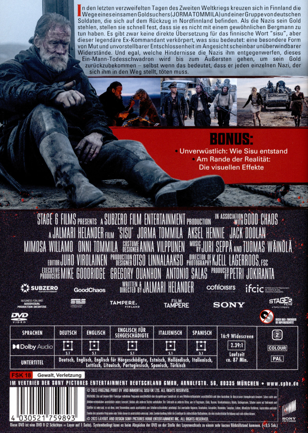 In SISU schickt Regisseur Jalmari Helander eine One-Man-Death-Squad auf Nazijagd. Dank der fantastischen Kameraarbeit und einem tollen Score lässt er dabei ausgerechnet in der Eiseskälte Finnlands echtes Italowestern-Feeling aufkommen. Mit genau der richtigen Prise Humor und einem schier unerschöpflichen Vorrat an guten Ideen, ist SISU ein Crowdpleaser, der seine Western-Ästhetik geschickt mit modernen Einflüssen von Quentin Tarantino bis John Wick verstrickt und sein Herz für gut gemachten Genrespaß stolz vor der Brust trägt.