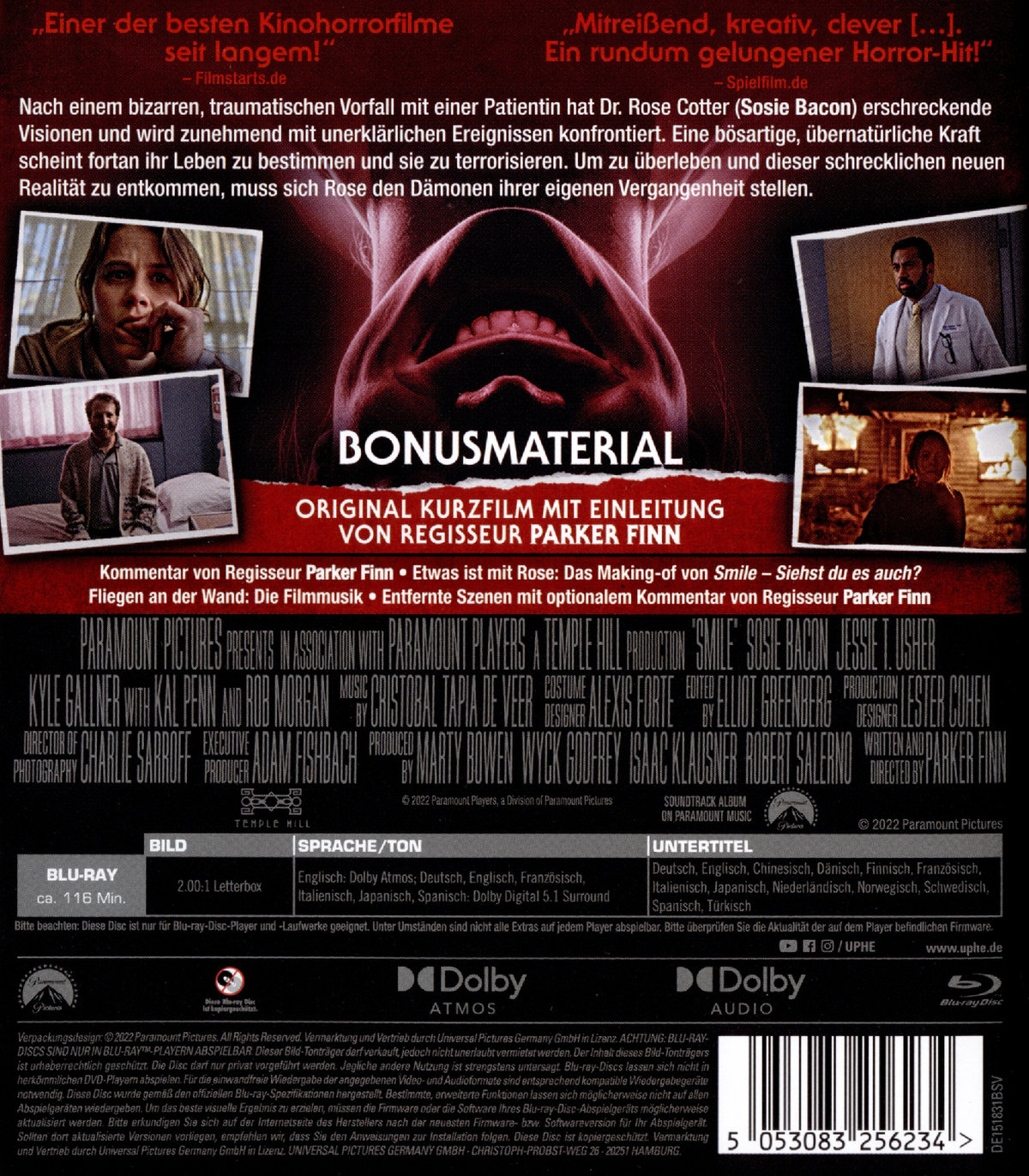 Kommentar von Regisseur Parker Finn, Das Making of von "Smile - Siehst du es auch?", Filmmusik, Entfernte Szenen mit optionalem Kommentar von Regisseur Parker Finn: Panikattacke,und mehr