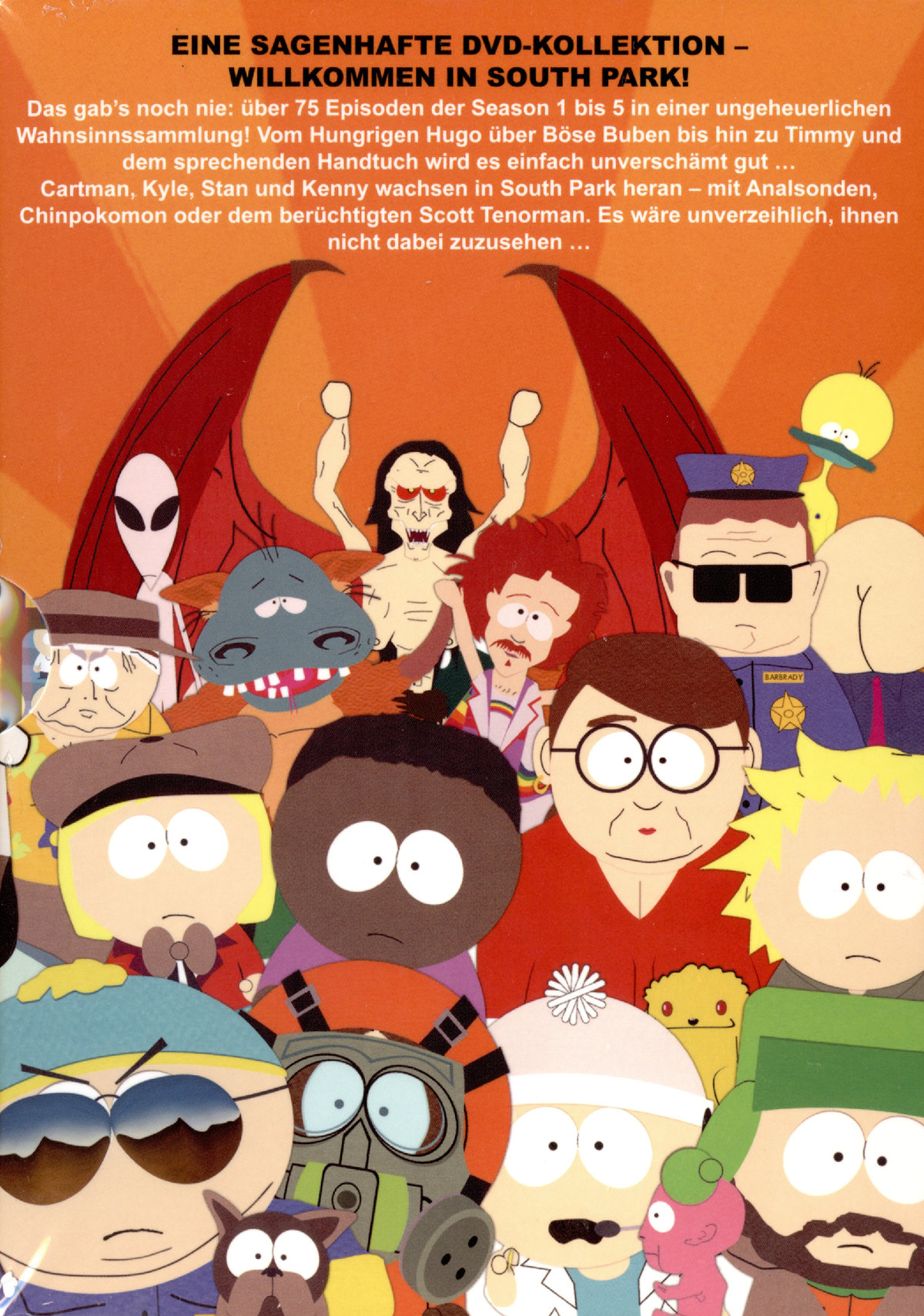 Eine sagenhafte DVD-Kollektion - Willkommen in South Park! Das gab's noch nie: über 75 Episoden der Season 1 bis 5 in einer ungeheuerlichen Wahnsinnssammlung!Vom Hungrigen Hugo über Böse Buben bis hin zu Timmy und dem sprechenden Handtuch wird es einfach unverschämt gut ...Cartman, Kyle, Stan und Kenny wachsen in South Park heran - mit Analsonden, Chinpokomon oder dem berüchtigten Scott Tenorman.Es wäre unverzeichlich, ihnen nicht dabei zuzusehen ...