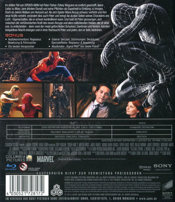 Produktinformationen "Spider-Man 3 (blu-ray)"