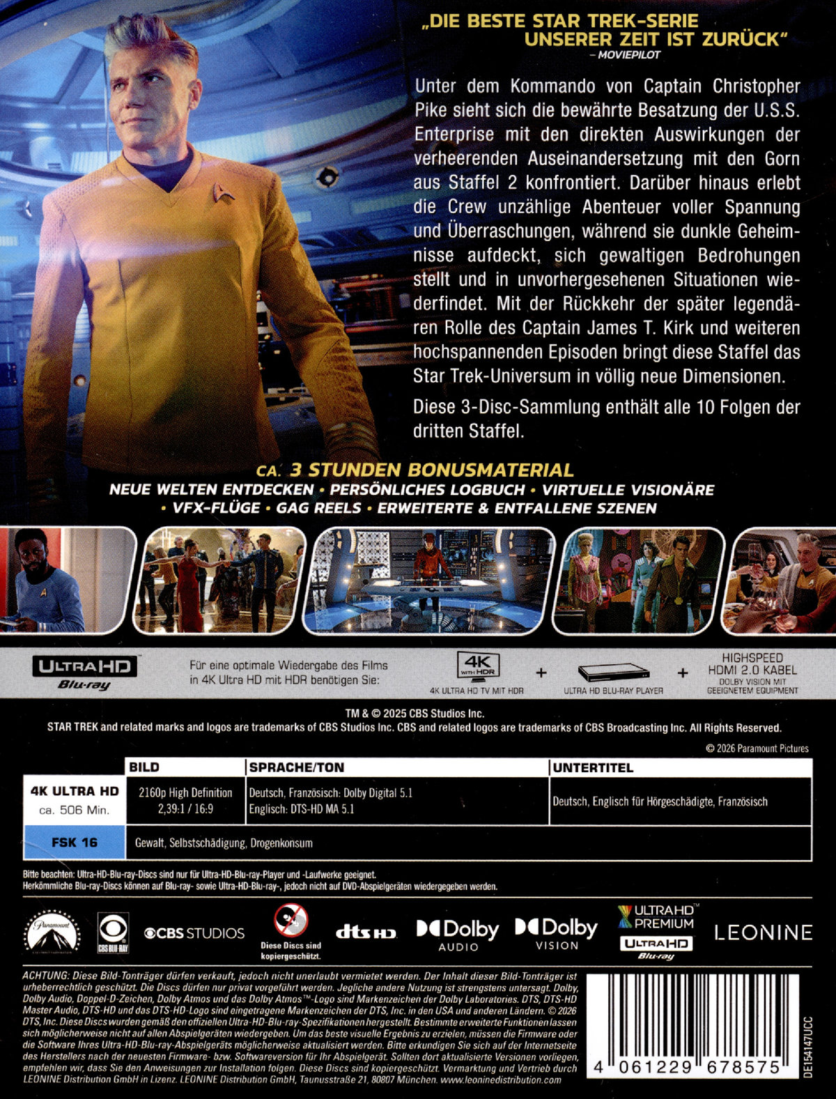 Produktinformationen "Star Trek: Strange New Worlds - Staffel 3 - Limited Steelbook Edition (4K Ultra HD)"