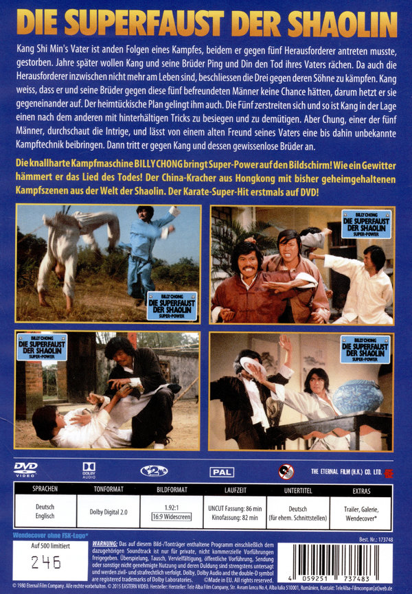 Die knallharte Kampfmaschine BILLY CHONG bringt Super-Power auf den Bildschirm! Wie ein Gewitter hämmert er das Lied des Todes! Der China-Kracher aus Hongkong mit bisher geheimgehaltenen Kampfszenen aus der Welt der Shaolin. Der Karate-Super-Hit erstmals auf DVD!