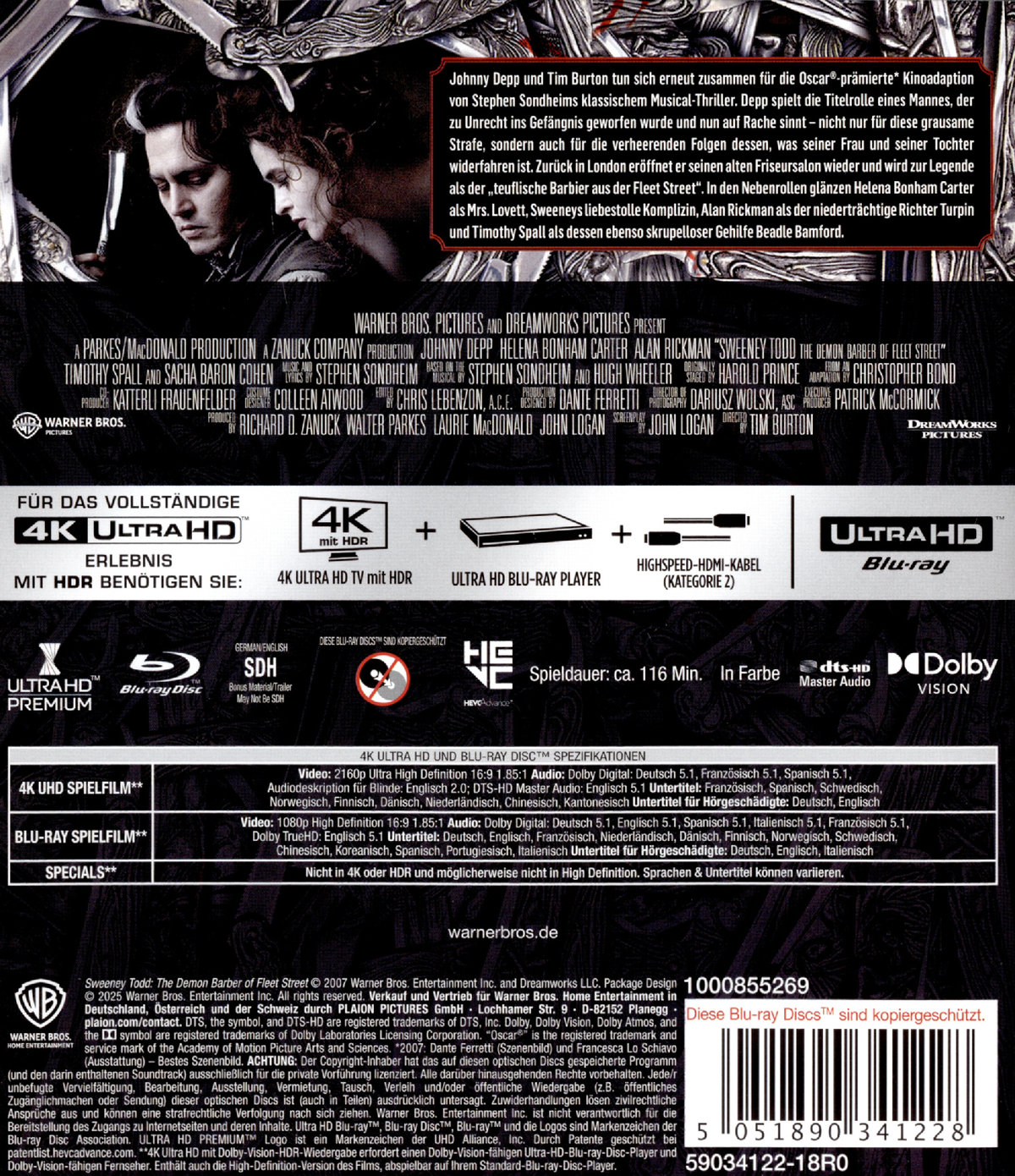 Sweeney Todd: Der teuflische Barbier aus der Fleet Street (4K Ultra HD) (+ Blu-ray)