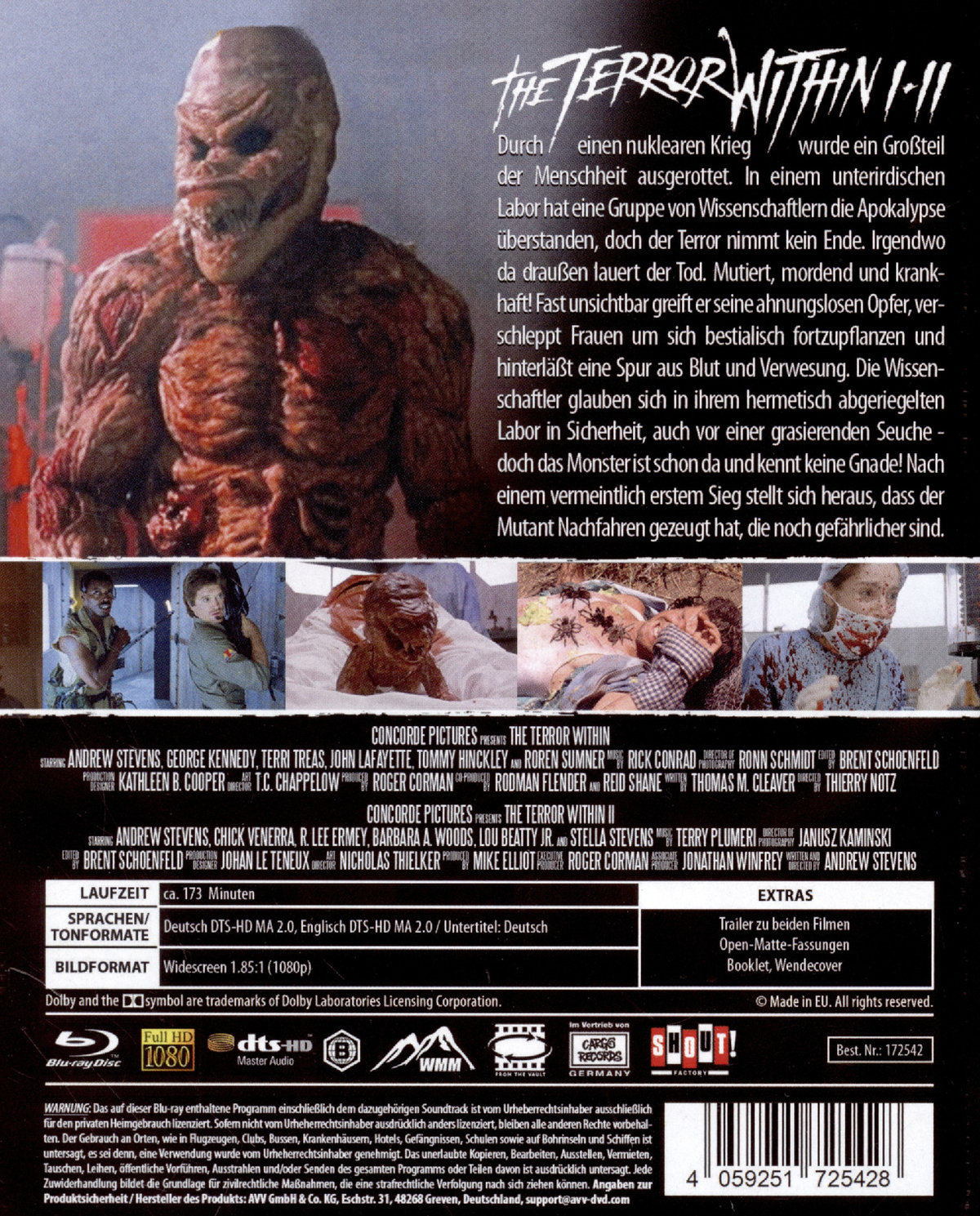Bild: 1.85.1 Widescreen (1080p) Ton: Deutsch / Englisch DTS HD MA 2.0 Untertitel: Deutsch Extras: Trailer zu beiden Filmen (Deutsch & Englisch), Open-Matte-Fassungen zu beiden Filmen (Deutsch & Englisch), Booklet, Wendecover * From The Vault #12 * Roger Cormans Mutanten-Kult im Doppelpack * 2K HD Remastered? * Zwei Filme auf zwei Blu-rays