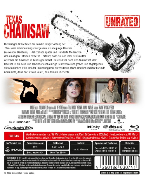 **TEXAS CHAINSAW führt die unheimliche Geschichte der mörderischen Familie Sawyer fort, der damals so viele Menschen zum Opfer fielen. Jahrzehnte später und hundert Meilen von den grausigen Tatorten entfernt, erfährt die junge Heather (Alexandra Daddario), dass sie von ihrer Großmutter, von der sie bislang gar nichts wusste, ein Anwesen in Texas geerbt hat. Um nicht ganz allein ins unbekannte Nirgendwo zu fahren, trommelt Heather ein paar Freunde zusammen und macht sich auf den Weg ...