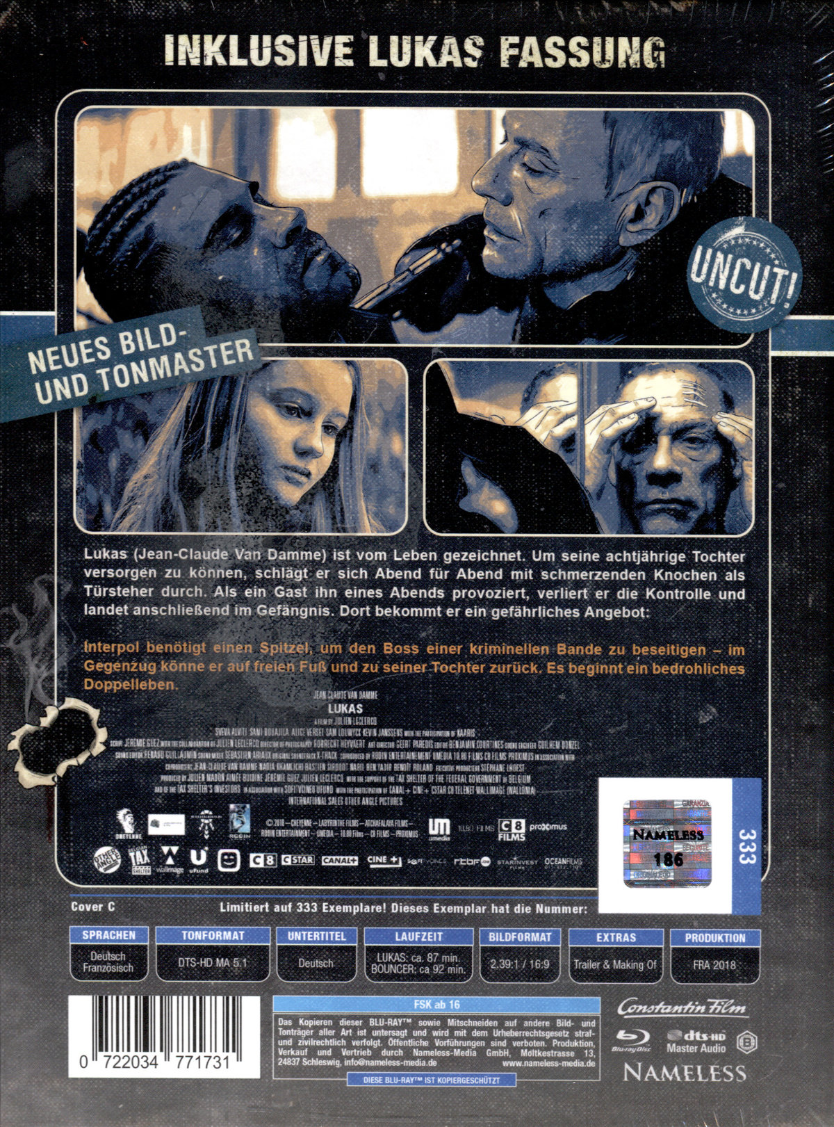 Düsterer Action-Thriller mit Hollywoodlegende Jean-Claude Van DammeUm seine 8-jährige Tochter versorgen zu können schlägt sich Ex-Bodyguard Lukas (Jean-Claude Van Damme) als Türsteher eines Nachtclubs durch. An einem belebten Freitagabend macht dort ein pöbelnder Gast Probleme. Lukas versucht die Situation zu entschärfen, doch der betrunkene Gast verliert die Kontrolle. In der Auseinandersetzung mit dem kampferprobten Türsteher erleidet der Disco-Besucher eine lebensbedrohliche Kopfverletzung. Um einer drohenden Gefängnisstrafe zu entgehen, sieht sich Lukas gezwungen, den Job zu wechseln: Er heuert in einem Strip-Club an. Doch es dauert nicht lang und die Cops von Interpol machen ihn ausfindig. Diese haben allerdings mehr im Sinn als den zerfurchten Türsteher in den Knast zu bringen. Sie bieten ihm einen Deal an: Der Boss des Tabledance-Clubs steht unter Verdacht, in großem Stile Falschgeld zu drucken. Lukas soll als Informant arbeiten - im Gegenzug könne er auf freien Fuß und zu seiner Tochter zurück.Es beginnt ein bedrohliches Doppelleben.