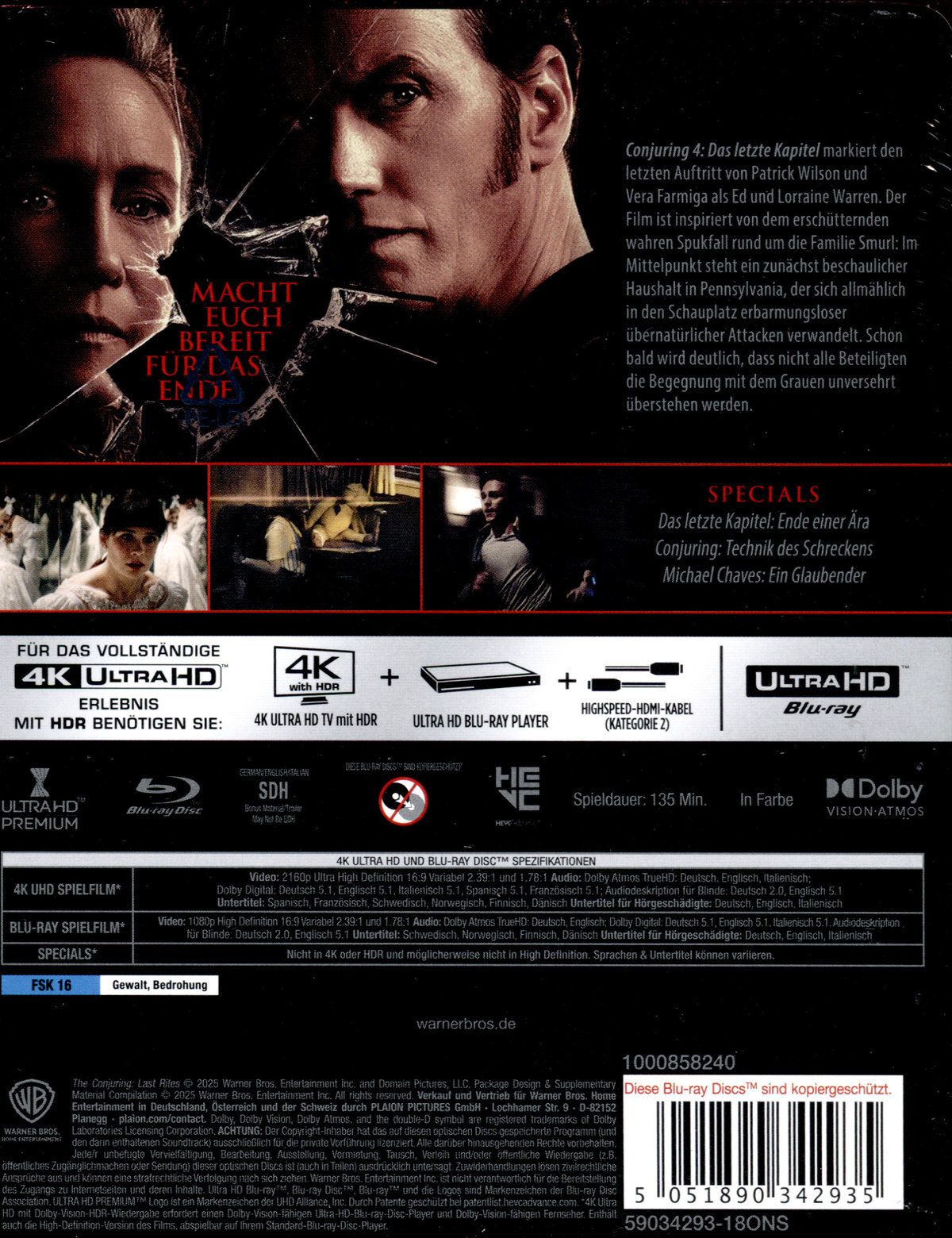 CONJURING 4: DAS LETZTE KAPITEL gewährt einmal mehr einen packenden Einblick in das auf wahren Begebenheiten basierende CONJURING Filmuniversum. Vera Farmiga und Patrick Wilson schlüpfen für einen letzten Fall in die Rollen der legendären paranormalen Ermittler Ed und Lorraine Warren – beste Voraussetzungen für einen weiteren packenden Höhepunkt der weltweit gefeierten Filmreihe!