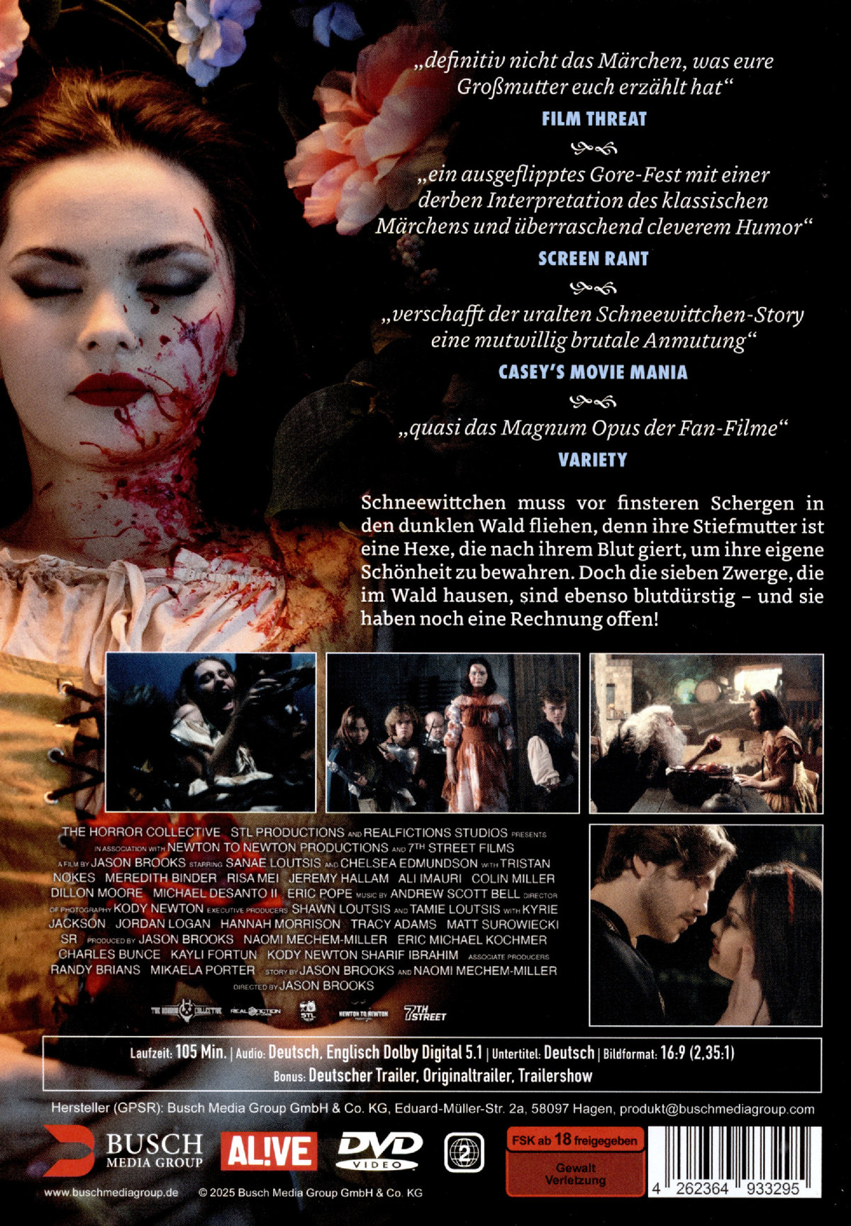 Ein ebenso skurriles wie blutiges Splatterfest für Freunde (und Feinde) klassischer Märchenfilme: Schneewittchen muss vor finsteren Schergen in den dunklen Wald fliehen, denn ihre Stiefmutter ist eine Hexe, die nach ihrem Blut giert, um ihre eigene Schönheit zu bewahren. Doch die sieben Zwerge, die im Wald hausen, sind ebenso blutdürstig – und sie haben noch eine Rechnung offen!