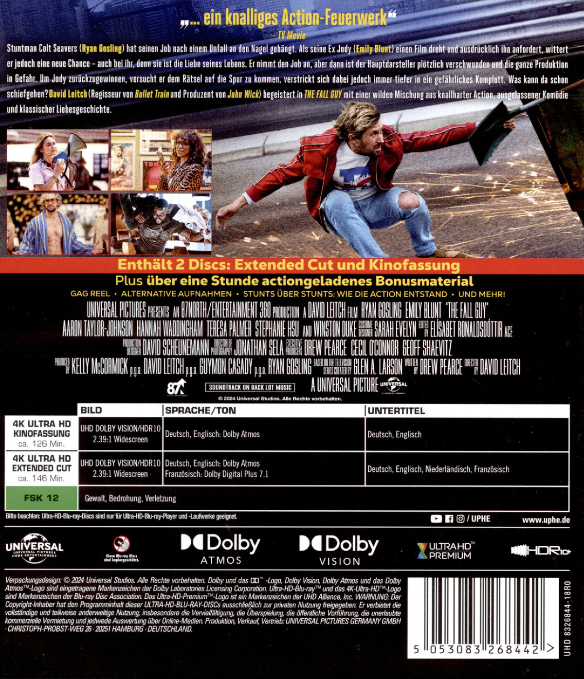 Colt Seavers ist Stuntman. Man sprengt ihn in die Luft, schießt auf ihn, zerschmettert ihm die Knochen und wirft ihn aus großer Höhe aus dem Fenster - alles zu unserer Unterhaltung. Nach einem Unfall, der seine Karriere fast beendet hätte, muss Colt einen vermissten Filmstar aufspüren, eine Verschwörung aufklären, die Liebe seines Lebens zurückgewinnen - und ganz nebenbei seinen normalen Job machen. Was soll da schon schiefgehen?Blu-ray & 4K Ultra HD Versionen enthalten Extended Version + Kinofassung. DVD Version enthält Kinofassung.