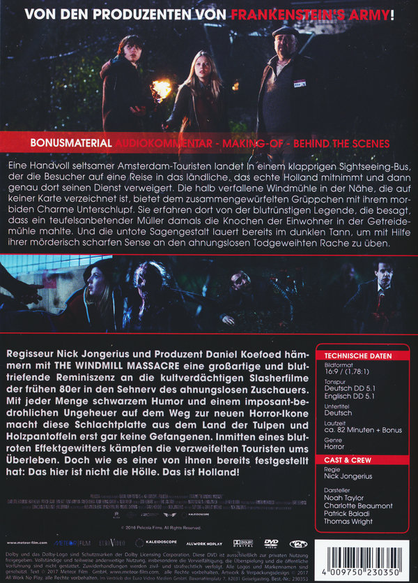 Nach einem mißglückten Neustart in Amsterdam verlässt die Australierin Jennifer (Charlotte Beaumont) fluchtartig die holländische Grachtenmetropole. Gemeinsam mit einem wortkargen Ex-Marine, einem abgehalfterten Arzt und einer Handvoll anderer seltsamer Touristen landet sie in einem klapprigen Sightseeing-Bus, der die Besucher auf eine Reise in das ländliche, das echte Holland mitnimmt und dann genau dort seinen Dienst verweigert. Die halb verfallene Windmühle in der Nähe, die auf keiner Karte verzeichnet ist, bietet dem zusammengewürfelten Grüppchen mit ihrem morbiden Charme Unterschlupf. Sie erfahren dort von der blutrünstigen Legende, die besagt, dass ein teufelsanbetender Müller damals die Knochen der Einwohner in der Getreidemühle mahlte. Und da sie alle durch dunkle Geheimnisse geeint werden, lauert im dunklen Tann bereits die untote Sagengestalt, um mit Hilfe ihrer mörderisch scharfen Sense an den ahnungslosen Todgeweihten Rache zu üben.