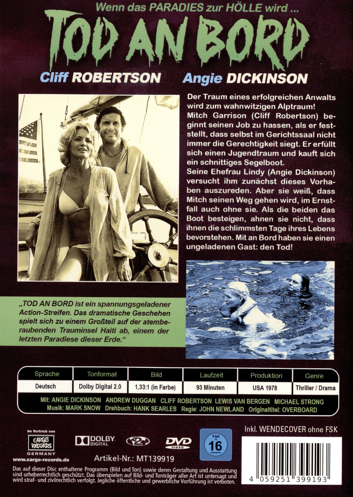 Der Traum eines erfolgreichen Anwalts wird zum wahnwitzigen Alptraum! Mitch Garrison (Cliff Robertson) beginnt seinen Job zu hassen, als er feststellt, dass selbst im Gerichtssaal nicht immer die Gerechtigkeit siegt. Er erfüllt sich einen Jugendtraum und kauft sich ein schnittiges Segelboot. Seine Ehefrau Lindy (Angie Dickinson) versucht ihm zunächst dieses Vorhaben auszureden. Aber sie weiß, dass Mitch seinen Weg gehen wird, im Ernstfall auch ohne sie. Als die beiden das Boot besteigen, ahnen sie nicht, dass ihnen die schlimmsten Tage ihres Lebens bevorstehen. Mit an Bord haben sie einen ungeladenen Gast: den Tod!