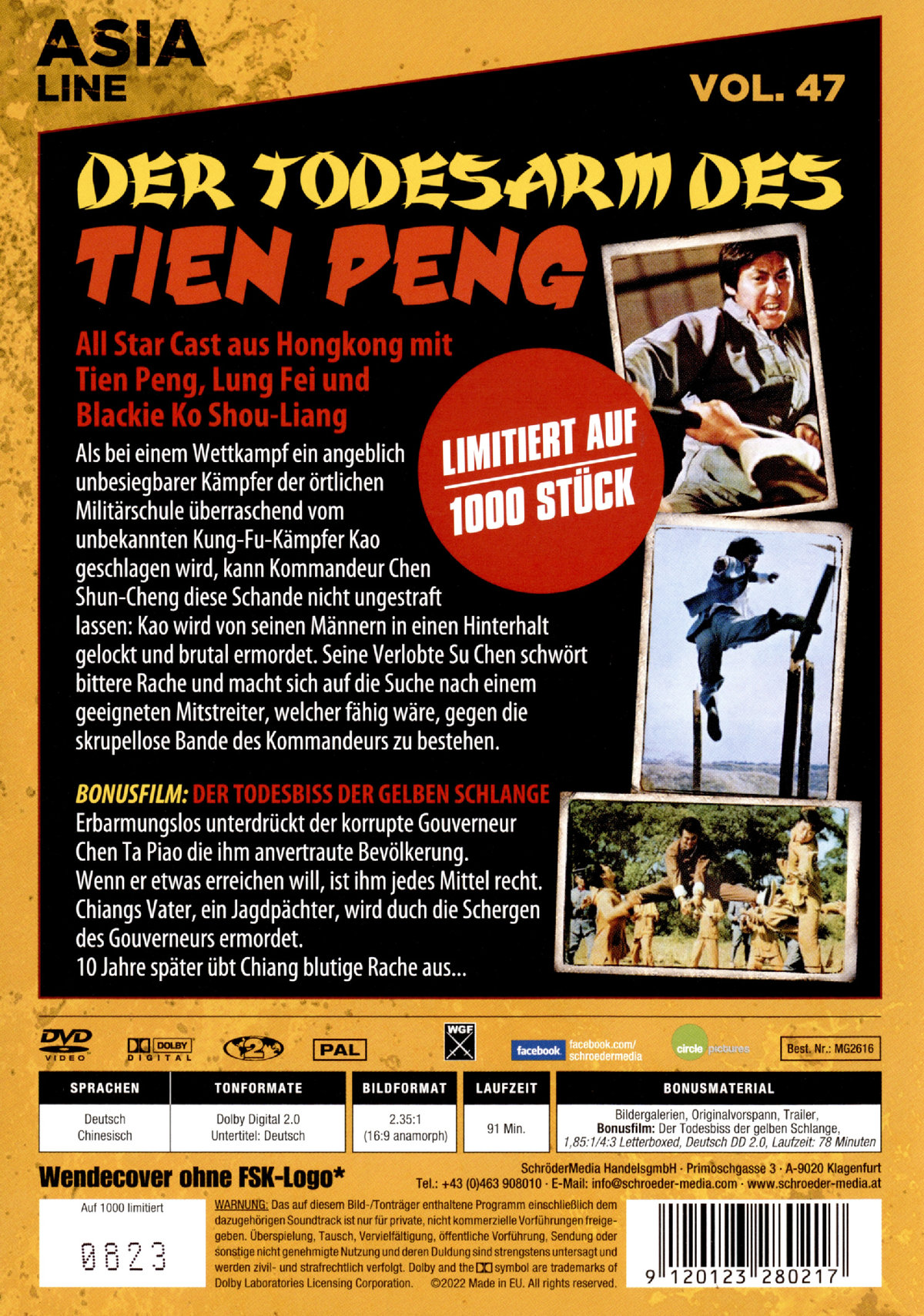 Inkl. Bonusfilm: Der Todesbiss der Gelben Schlange.