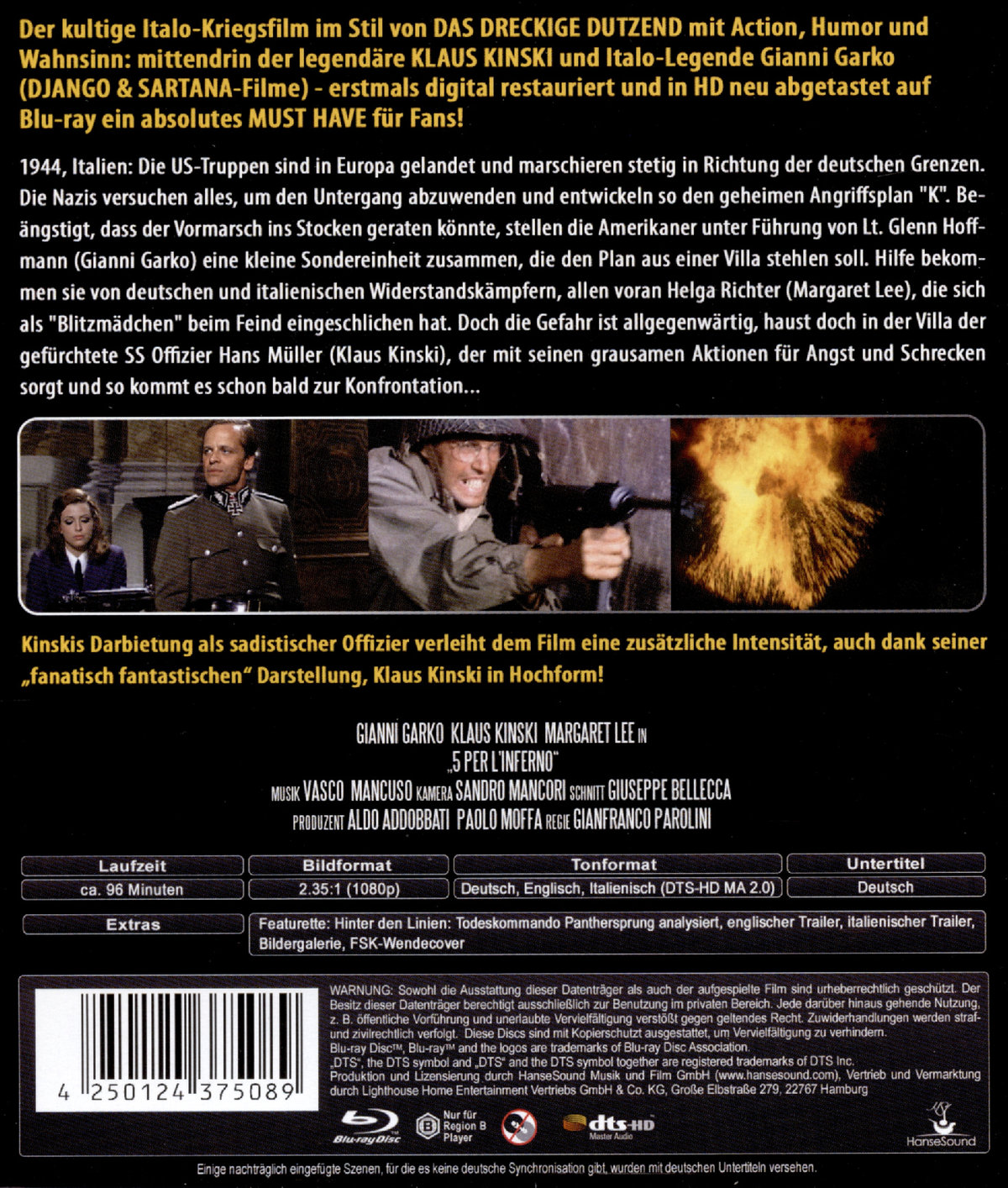 1944, Italien: US-Truppen dringen nach Europa vor, während die Nazis mit dem geheimen Angriffsplan "K" ihren Untergang verhindern wollen. Um den Vormarsch nicht zu gefährden, beauftragt Lt. Glenn Hoffmann (Gianni Garko) eine kleine Sondereinheit, den Plan aus einer streng bewachten Villa zu stehlen - unter Kontrolle des brutalen SS-Standartenführers Hans Müller (Klaus Kinski).