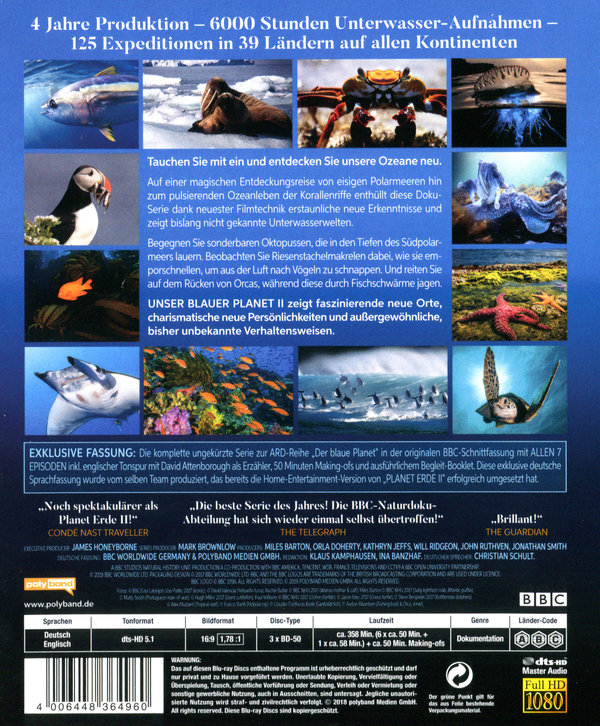 Produktinformationen "UNSER BLAUER PLANET II - Die komplette ungeschnittene Serie zur ARD-Reihe "Der blaue Planet" [3 BRs] (Blu-ray Disc)"
