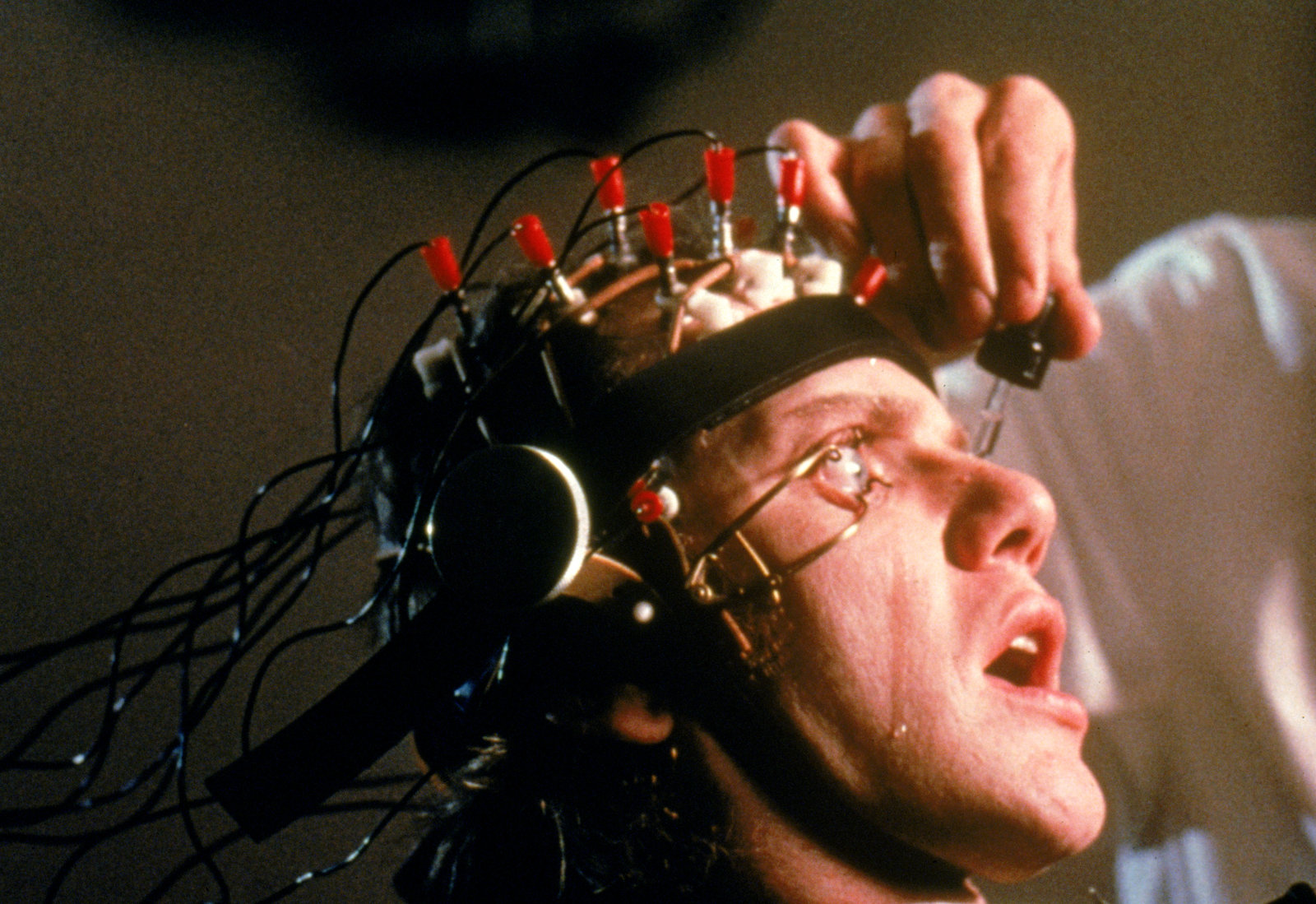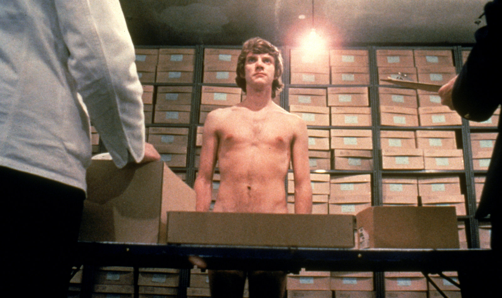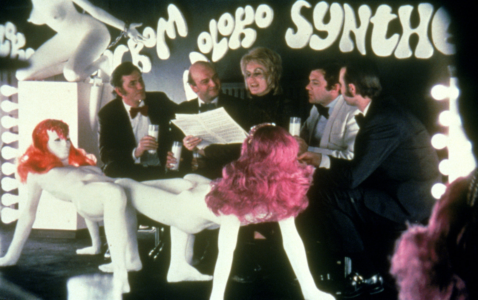 Das Gesicht starrt uns brutal an, bildschirmfüllend. Langsam fährt die Kamera zurück. Alex sitzt auf einer Couch der Korova Bar, umgeben von weißen Skulpturen nackter Frauen. Er nippt an seiner gedopten Milch, die "dich heiß macht, auf ein bisschen von der alten Ultra-Brutalität".