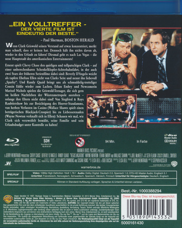 Das Chaos-Quartett ist wieder da! Diesmal verbringen die Griswolds ihren Urlaub im grellen Mekka von Strapsen und Spielautomaten, in Las Vegas. Doch kaum im wilden Zockerparadies angekommen, trennen sich zunächst die Wege: Papa Griswold verspielt die Reisekasse, Tochter Audrey landet in einem Nachtclub-Käfig, Mutter Ellen erliegt dem Charme eines Schmusebarden und für richtig Wirbel sorgt der Sohnemann...