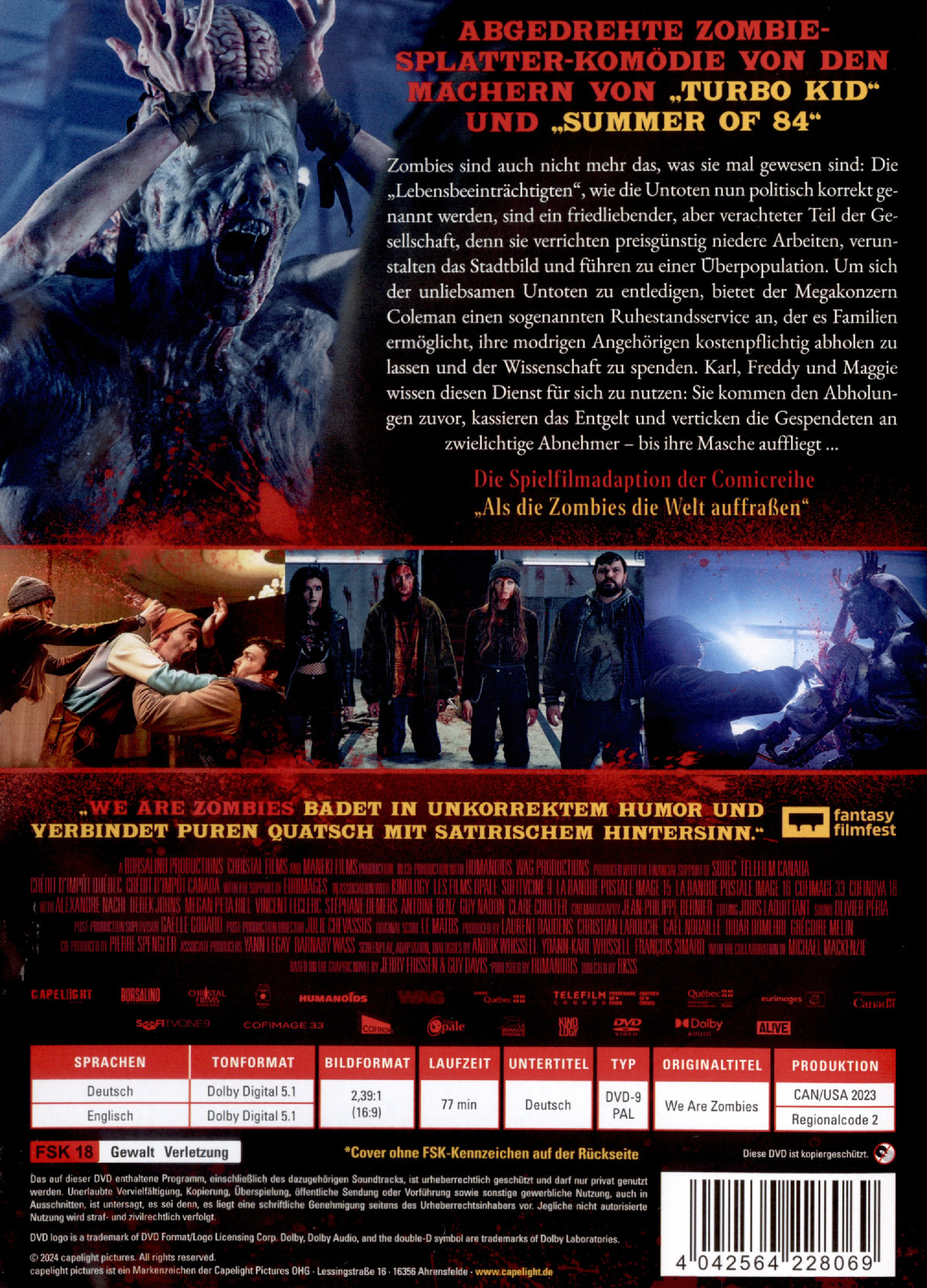 Zombies sind auch nicht mehr das, was sie mal gewesen sind: Die „Lebensbeeinträchtigten“, wie die Untoten nun politisch korrekt genannt werden, sind ein friedliebender, aber verachteter Teil der Gesellschaft, denn sie verrichten preisgünstig niedere Arbeiten, verunstalten das Stadtbild und führen zu einer Überpopulation. Um sich der unliebsamen Untoten zu entledigen, bietet der Megakonzern Coleman einen sogenannten Ruhestandsservice an, der es Familien ermöglicht, ihre modrigen Angehörigen kostenpflichtig abholen zu lassen und der Wissenschaft zu spenden. Karl, Freddy und Maggie wissen diesen Dienst für sich zu nutzen: Sie kommen den Abholungen zuvor, kassieren das Entgelt und verticken die Gespendeten an zwielichtige Abnehmer – bis ihre Masche auffliegt ...