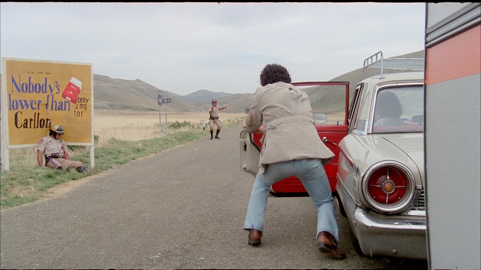 Ahnungslos nehmen Walter Mancini und seine Frau Eva einen Anhalter mit, der eine Wagenpanne vortäuscht. In Wahrheit ist es jedoch der psychisch kranke Gewaltverbrecher Adam Konitz, der mit Hilfe der Eheleute die Beute eines Überfalls über die mexikanische Grenze schmuggeln will. Bald kommt es zu Streitereien und Konitz offenbart seine sadistische Natur...