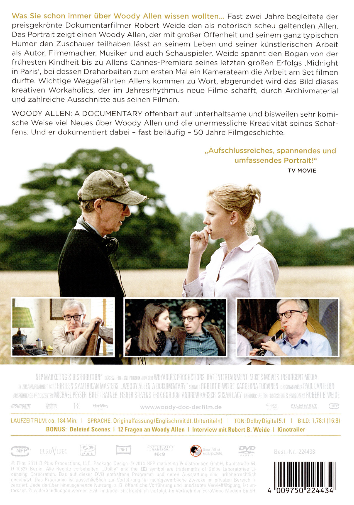 Was Sie schon immer über Woody Allen wissen wollten ... Fast zwei Jahre begleitete der preisgekrönte Dokumentarfilmer Robert Weide den als notorisch scheu geltenden Allen. Das Portrait zeigt einen Woody Allen, der mit großer Offenheit und seinem ganz typischen Humor den Zuschauer teilhaben lässt an seinem Leben und seiner künstlerischen Arbeit als Autor, Filmemacher, Musiker und auch Schauspieler. Weide spannt den Bogen von der frühesten Kindheit bis zu Allens Cannes-Premiere seines letzten großen Erfolgs „Midnight in Paris“, bei dessen Dreharbeiten zum ersten Mal ein Kamerateam die Arbeit am Set filmen durfte. Wichtige Weggefährten Allens kommen zu Wort, abgerundet wird das Bild dieses kreativen Workaholics, der im Jahresrhythmus neue Filme schafft, durch Archivmaterial und zahlreiche Ausschnitte aus seinen Filmen.