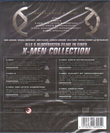 Beinhaltet X-Men, X-Men 2, X-Men - Der letzte Widerstand, X-Men - Erste Entscheidung, X-Men - Zukunft ist Vergangenheit und X-Men - Apocalypse Herausragender Cast mit Hugh Jackman, Jennifer Lawrence, Halle Berry, James McAvoy, Michael Fassbender, Ian McKellen und Patrick Stewart .